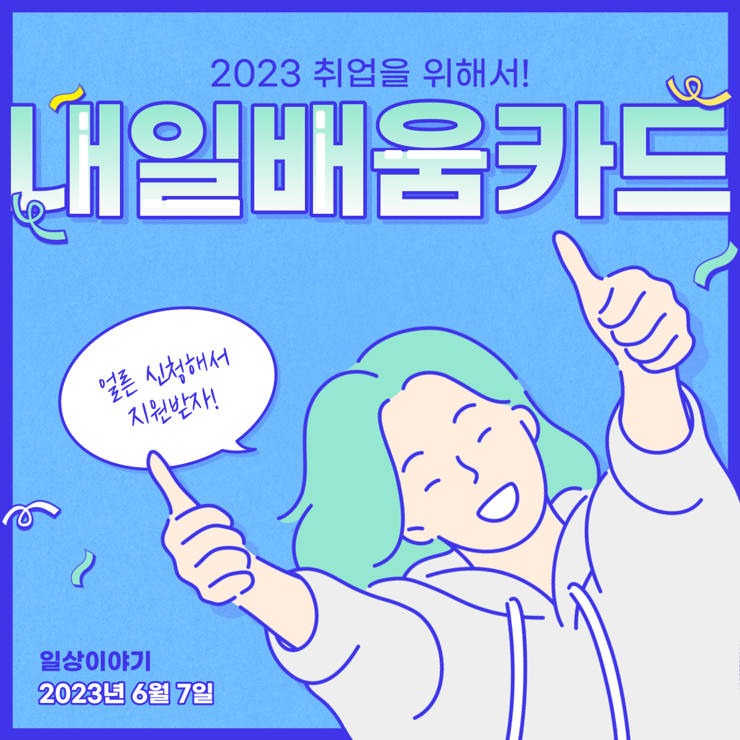 | 1. 내일배움카드 발급신청하기 [ 직업훈련포텁 사이트 접속 - 회원가입 - 로그인하기 - 내일배움카드 발급신청 ] 2.내일배움카드 발급신청과정 [ 신청인 정보 입력 - 실물 카드정보 선택 - 지원대상 선택 - 배송지 정보입력 - 신청자격 확인하기 - 개인정보 제공 동의 ] |